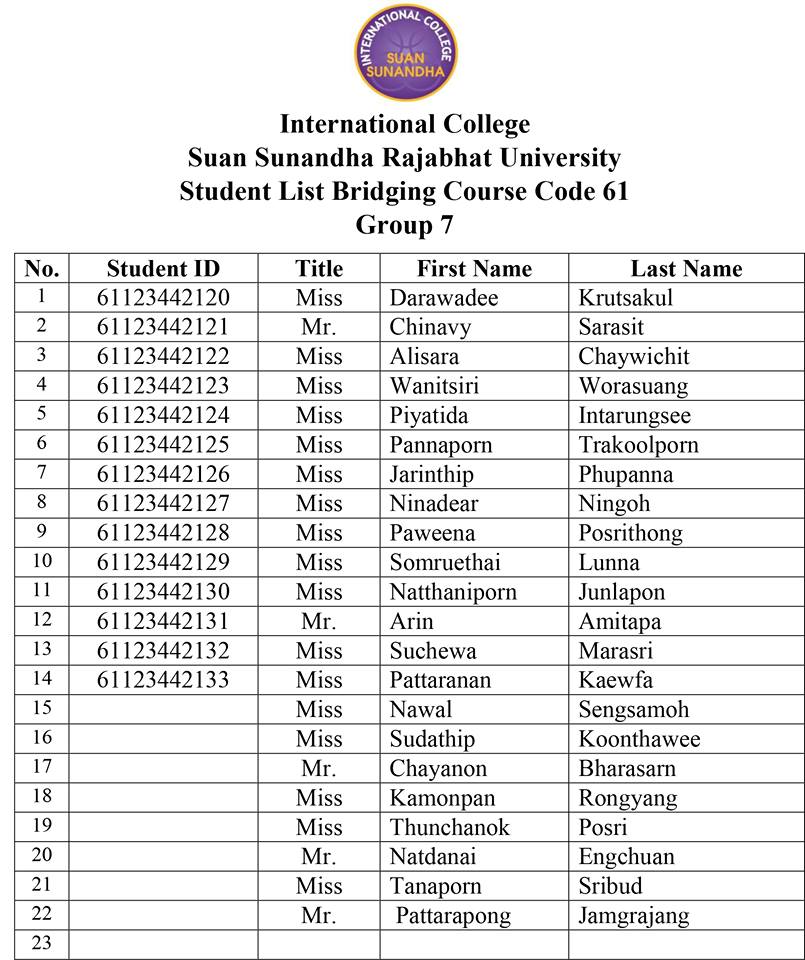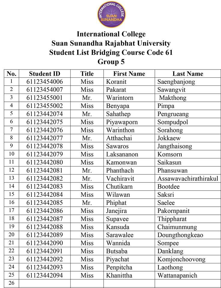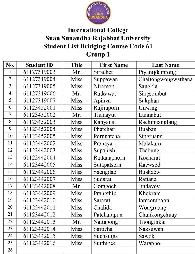 Download PDF ประกาศรายชื่อเรียนปรับพื้นฐาน(ฺBridging Course) แบ่งกลุ่ม