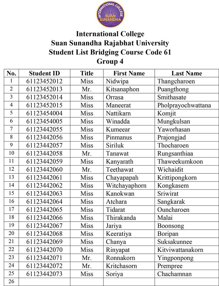 รายชื่อเรียนปรับพื้นฐาน(ฺBridging Course) แบ่งกลุ่มตามนี้นะคะ