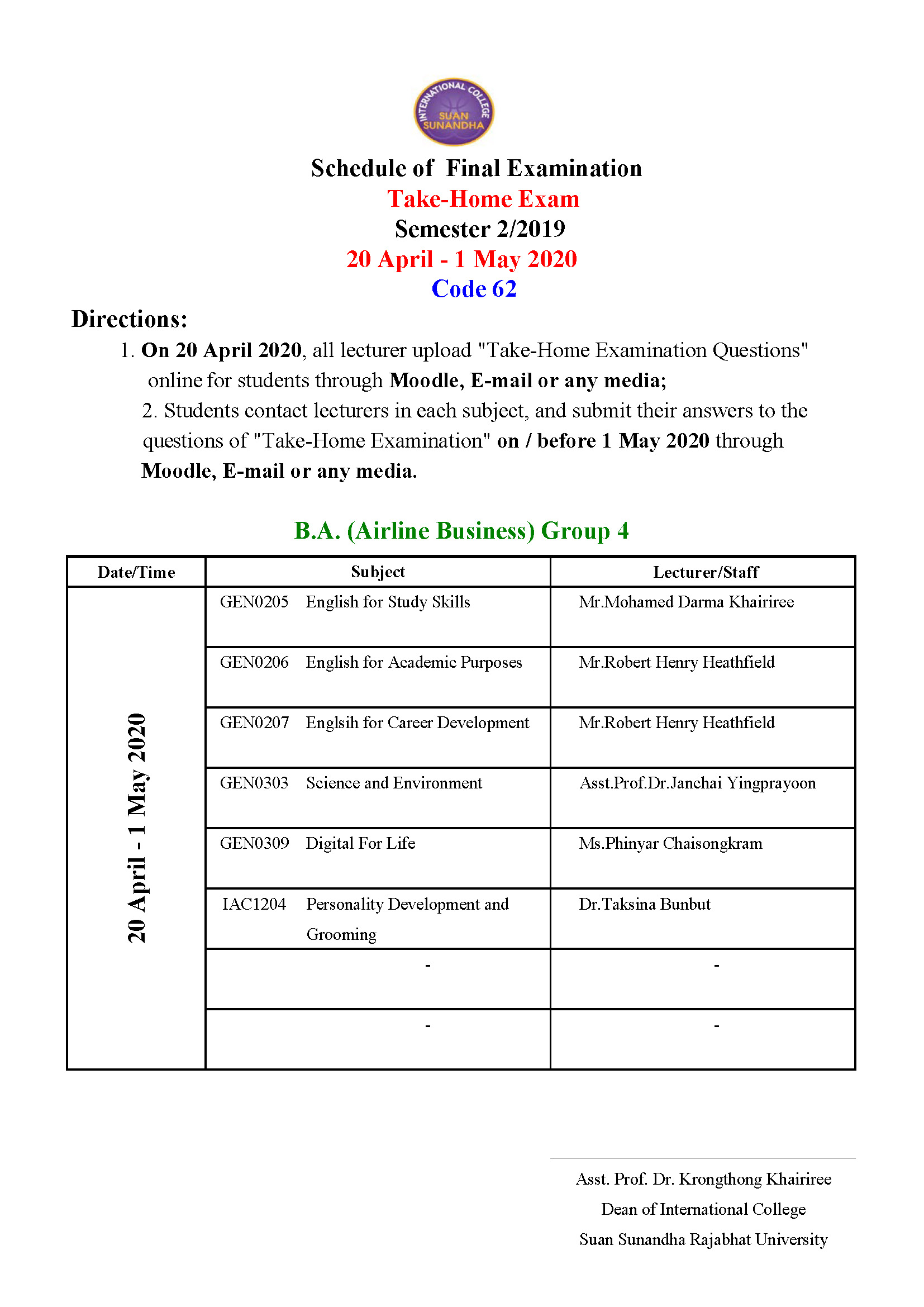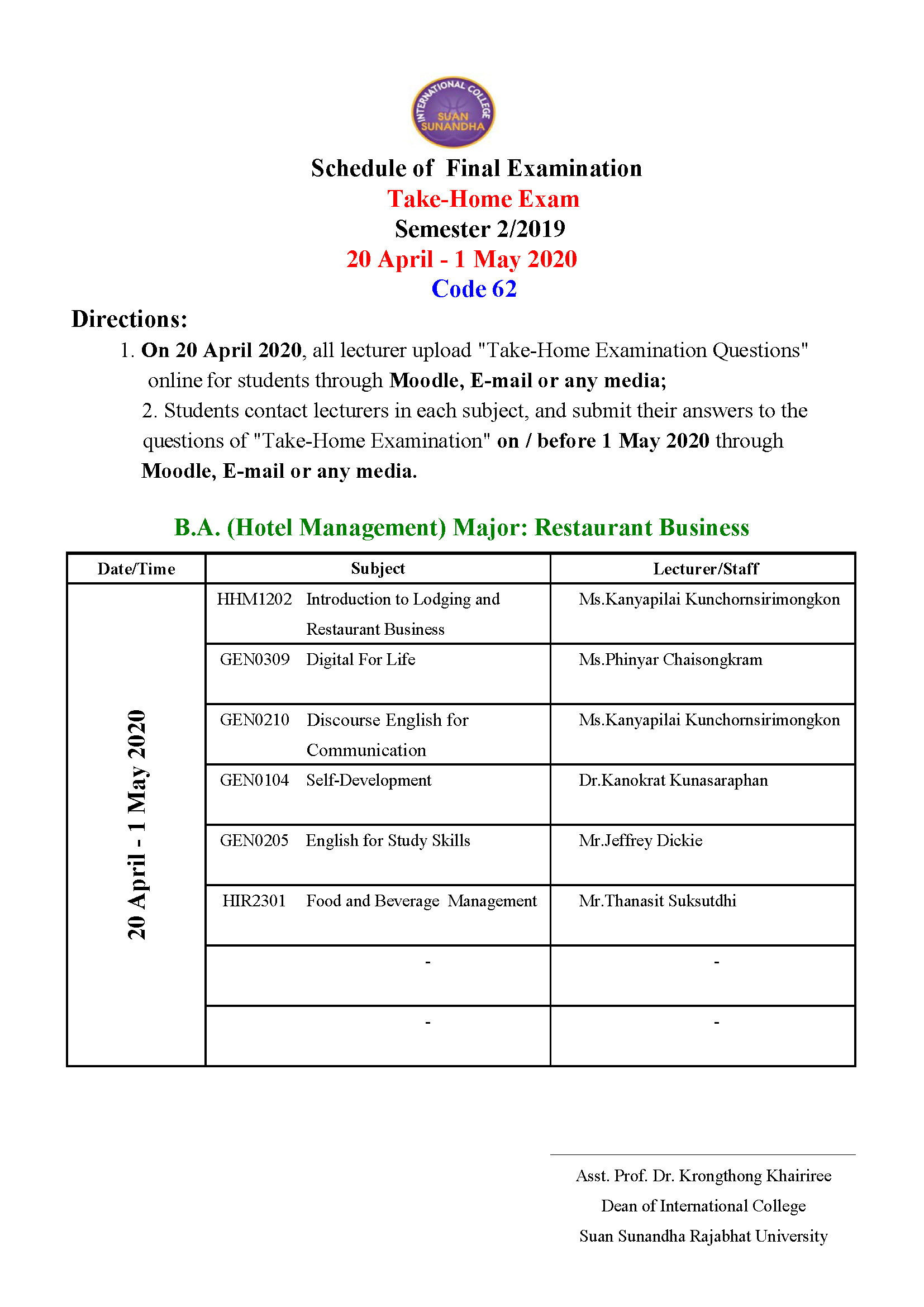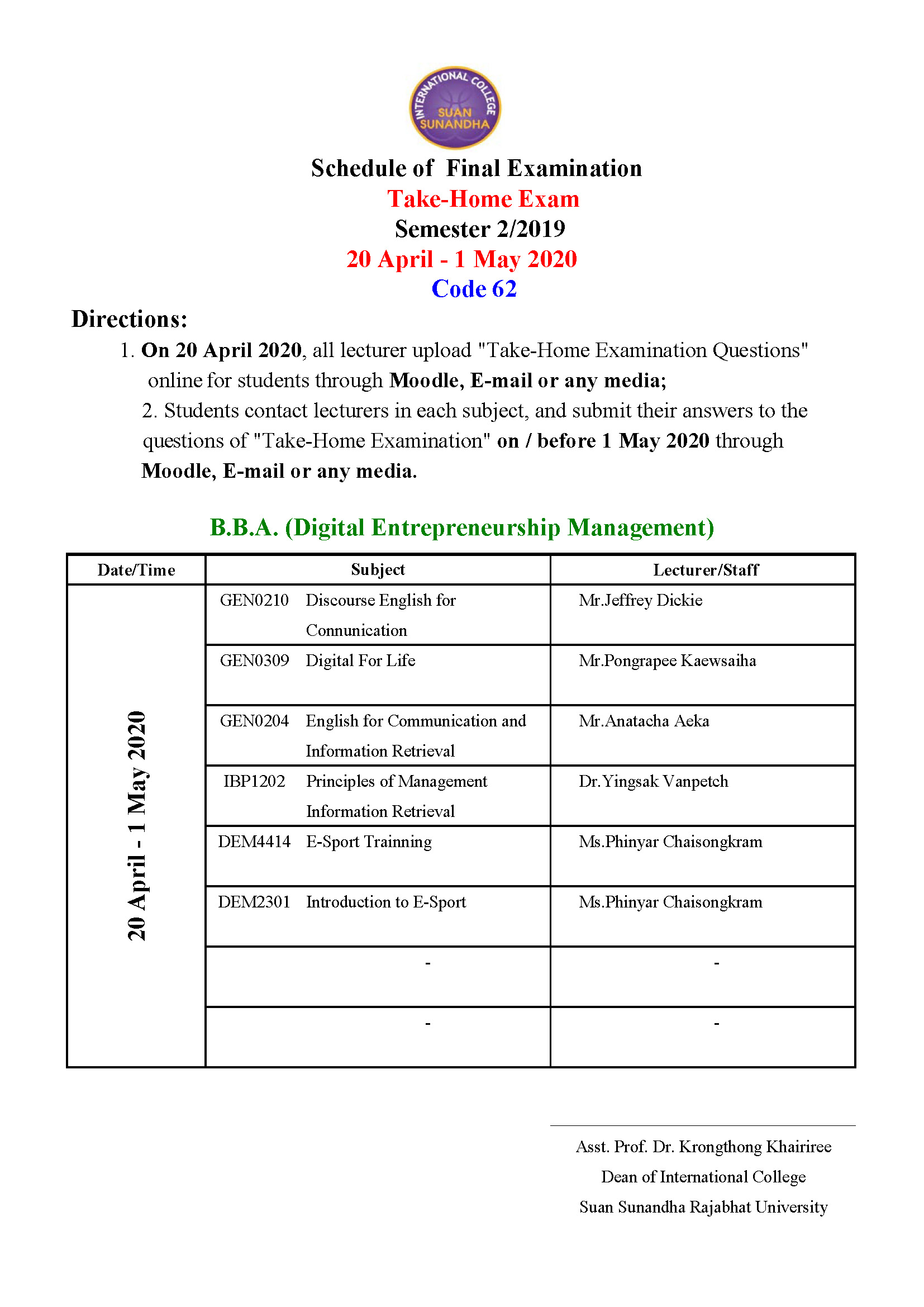 Download PDF Time Table Final Exam 2-2019 Code 62
