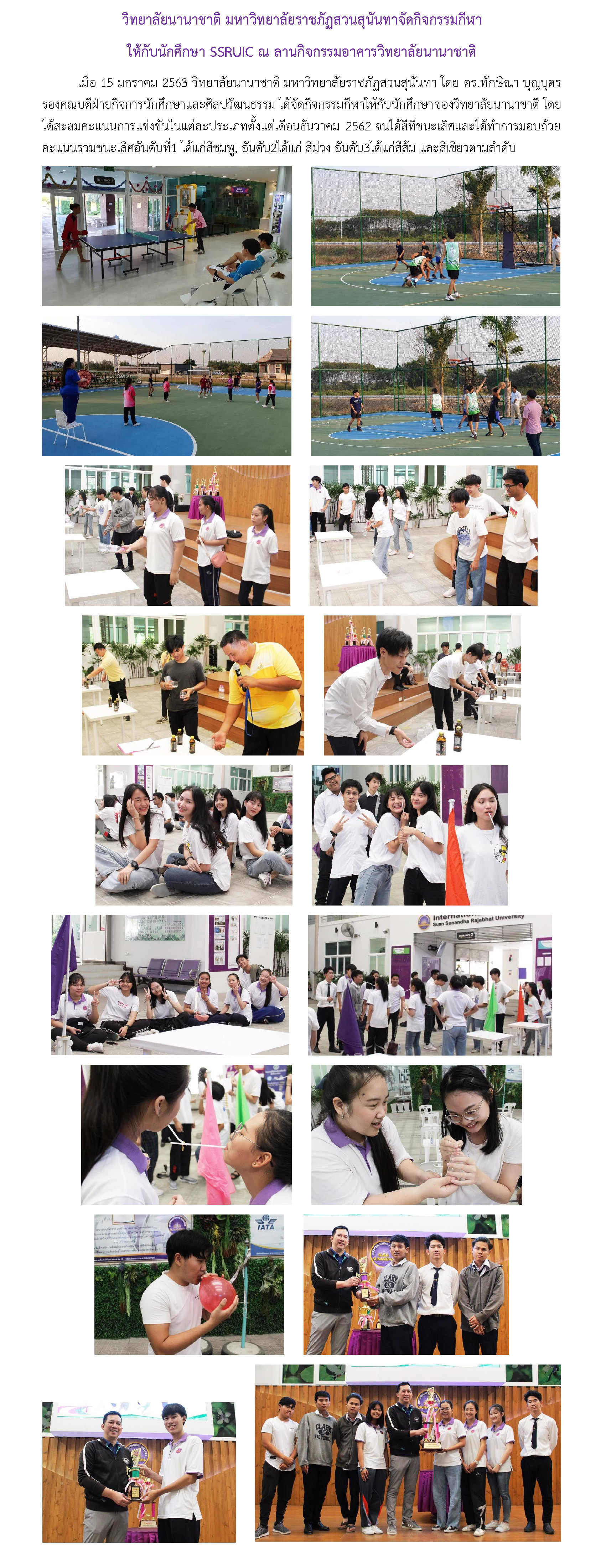 Download PDF วิทยาลัยนานาชาติ มหาวิทยาลัยราชภัฏสวนสุนันทาจัดกิจกรรมกีฬา ให้กับนักศึกษา SSRUIC ณ ลานกิจกรรมอาคารวิทยาลัยนานาชาติ