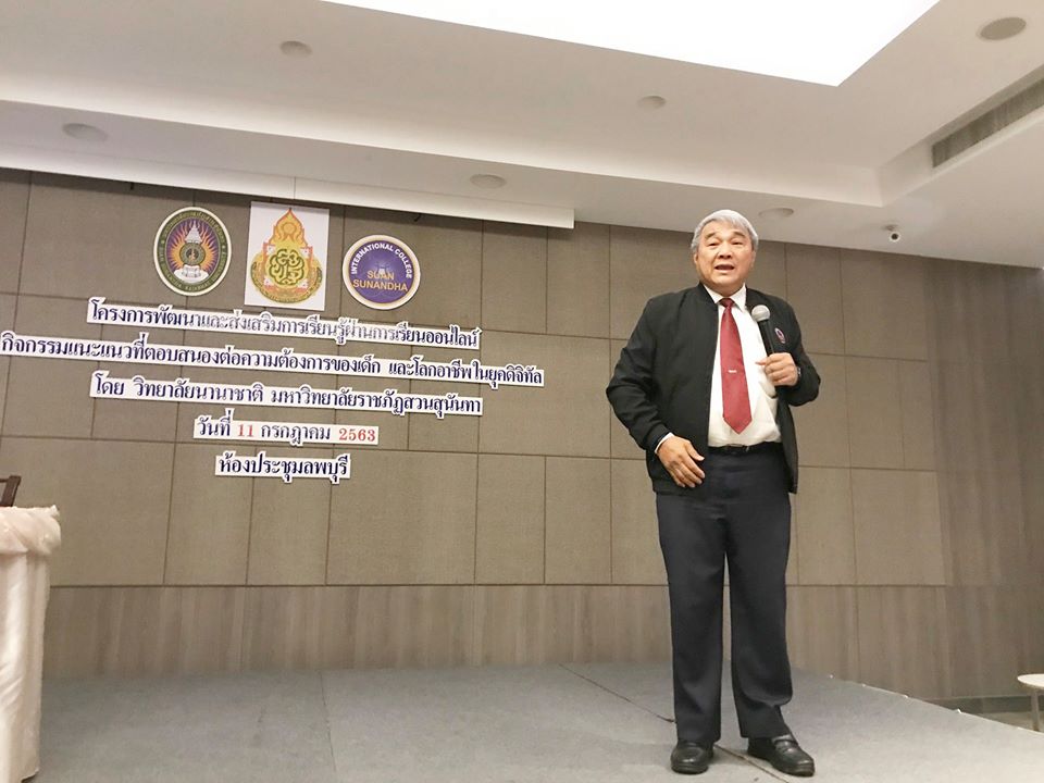 เมื่อวันที่ 11 กรกฎาคม 2563 วิทยาลัยนานาชาติ มหาวิทยาลัยราชภัฏสวนสุนันทา ได้จัดโครงการพัฒนาและส่งเสริมการเรียนรู้ผ่านการเรียนออนไลน์ งานกิจกรรมแนะแนวที่ตอบสนองต่อความต้องการของเด็ก และโลกอาชีพในยุคดิจิทัล ณ ห้องประชุมลพบุรี โรงแรมท้อปแลนด์ จังหวัดพิษณุโลก โดยได้รับเกียรติการเป็นประธานเปิดงานโดย ผู้ช่วยศาสตราจารย์ ดร.จันทร์ชัย หญิงประยูร รองคณบดีฝ่ายวิจัยและบริการวิชาการ